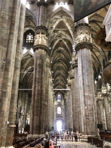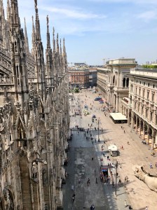 The cathedral is on the site of a more ancient church dating from the fourth century,the archeological remains of which are accessible in the church basement. The Duomo was commenced in 1386 and added to for several hundred years. By the end of the tour our heads were bursting with facts, most of which we will never recall. I do remember it has 108 spires and by going up to the roof terraces we were able to see them very close up, the views were pretty good too!