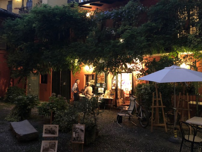 Evening and it was off to the Navigli Canal District for the Milanese tradition of Aperitivo, the restaurants long the canal have a unique happy hour(s) where you buy a drink and food is included. This is not the Aussie style all you can eat but a buffet of delectable fresh Italian deliciousness. For the price of our Aperol Spritz (aperol, prosecco and soda) we had a wonderful meal thrown in ! All of this in a gorgeous setting, so very Italian !